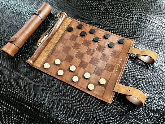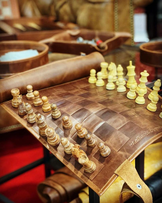 Roll Up Leather Chess Set - Magnet Option - Tobacco