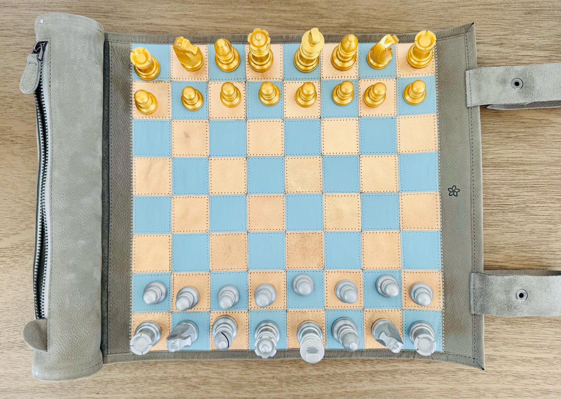 - Genuine leather rolling chess set, handmade by MELIA - The King of Luxury Games