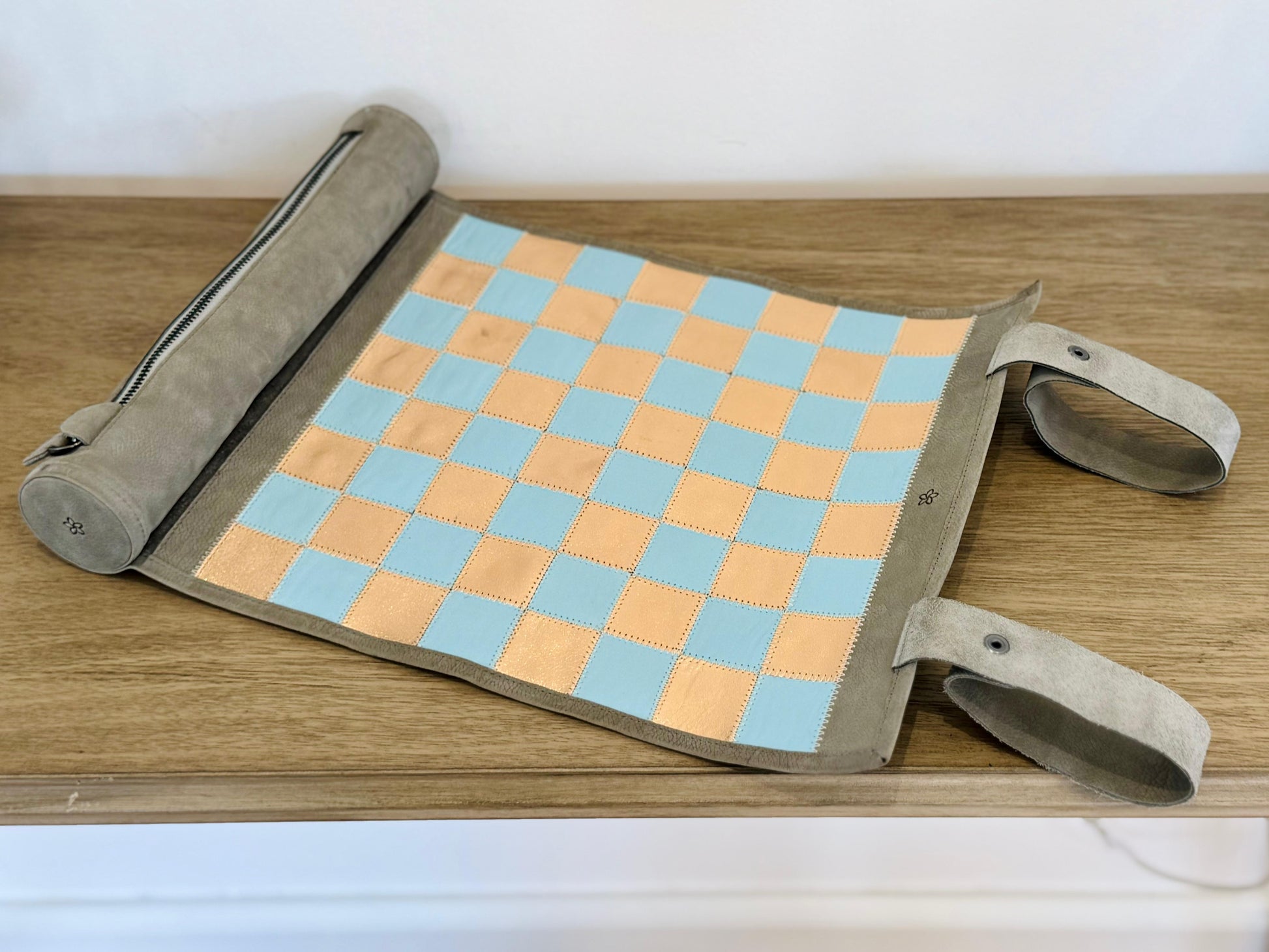 - Rollable chessboard made of high-quality genuine leather – stylish & space-saving