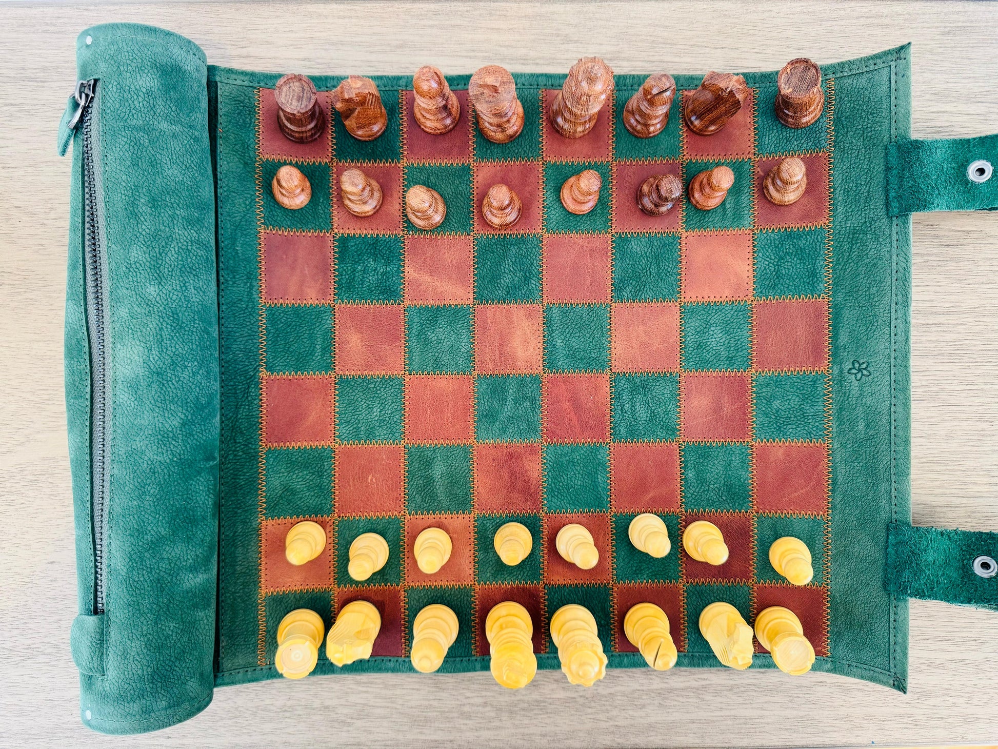 - Genuine leather rolling chess set, handmade by MELIA - The King of Luxury Games