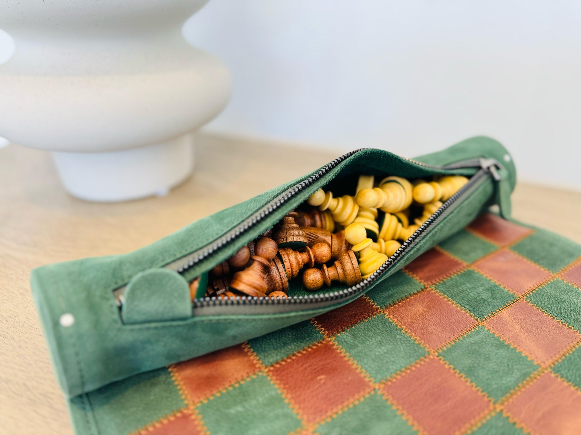 - Rollable chessboard made of high-quality genuine leather – stylish & space-saving