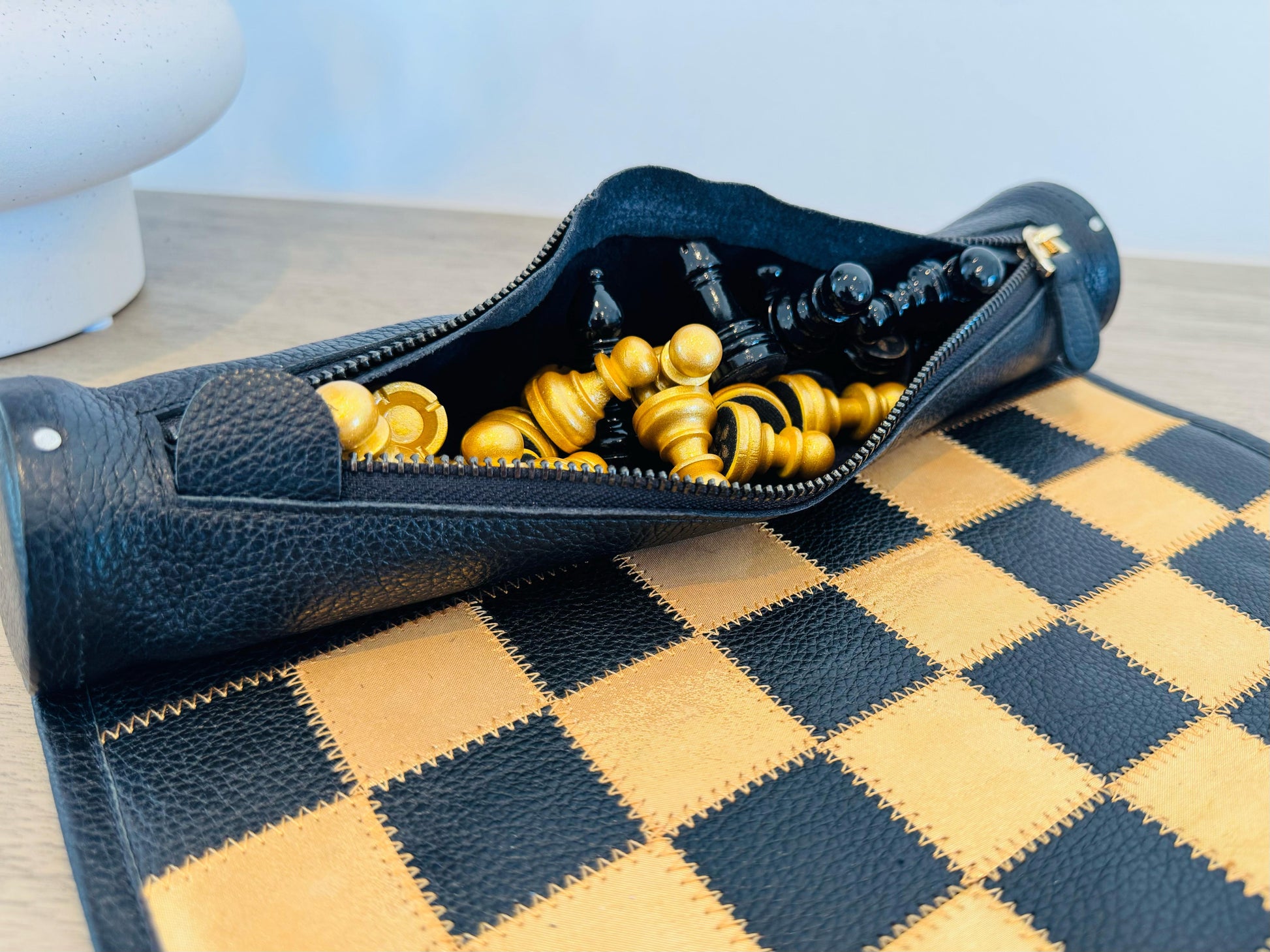 - Design: Genuine leather chessboard in a classic contrast design