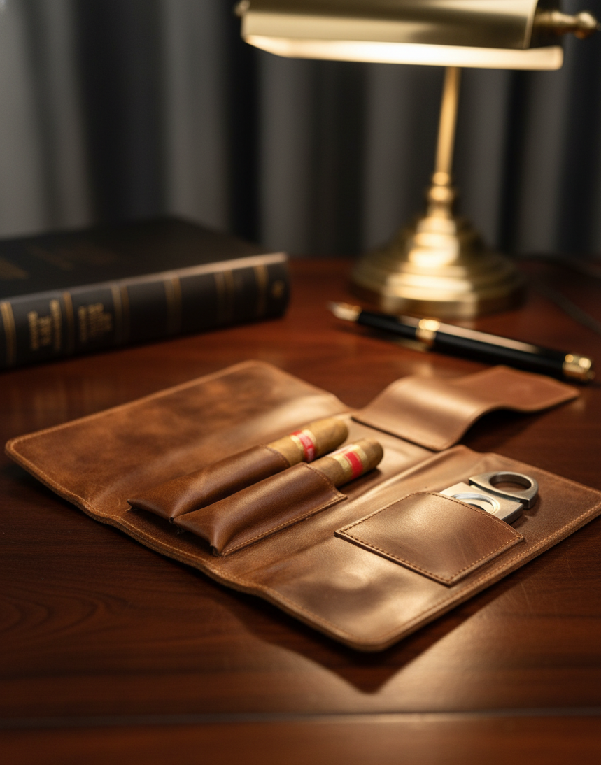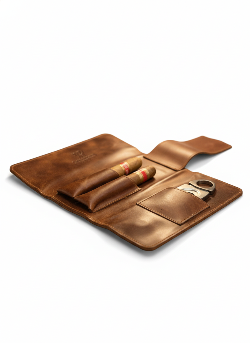 Luxurious Slim Jacket Cigar Case in Genuine Leather – Elegant Case for 2-3 Cigars